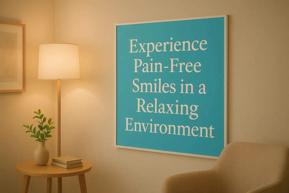 The clinic creates a soothing atmosphere incorporating aromatherapy, which includes calming scents that help ease nerves. Additionally, patients can enjoy personalized entertainment through TVs in treatment rooms and use comfort amenities such as neck cushions and blankets, all designed to support a relaxed dental visit.