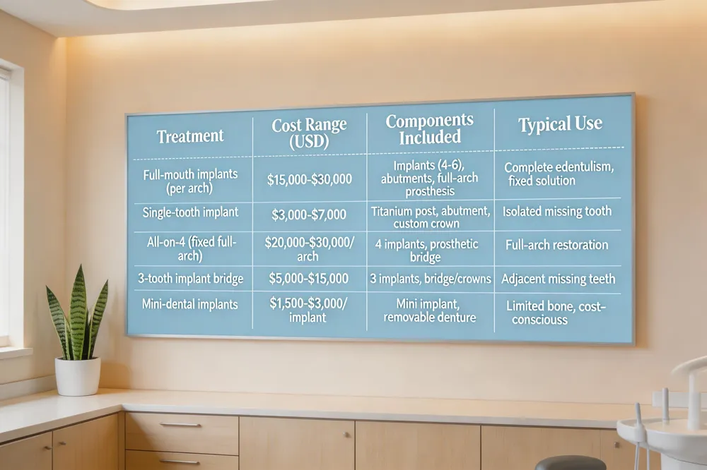 - All‑on‑4 / All‑on‑6 (fixed full‑arch solutions with fewer implants)
