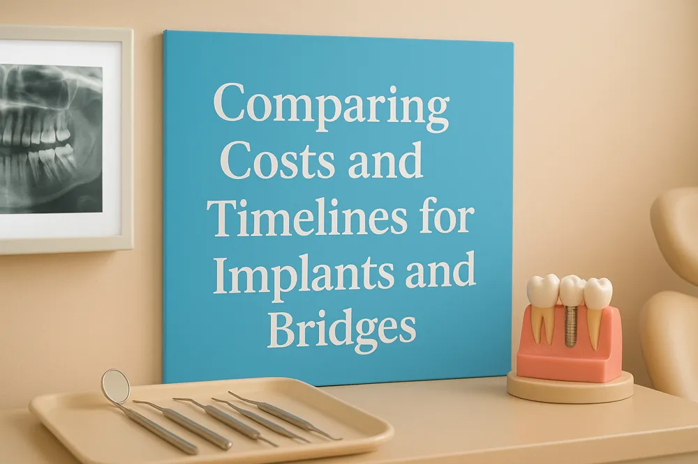 Patient comfort and adaptation are often higher with implants since they do not place stress on neighboring teeth. Bridges may require a period of adjustment and can sometimes cause discomfort if not perfectly fitted. See the comparison in Dental bridges vs implants.