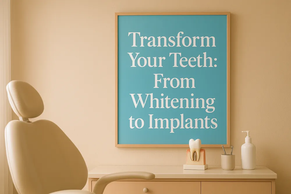 Cosmetic dentistry includes various treatments designed to improve the appearance of your teeth and smile. Common procedures are teeth whitening, dental veneers, dental implants, crowns, and dental bonding. These treatments address issues such as discoloration, chipped or cracked teeth, gaps, misalignment, and missing teeth.