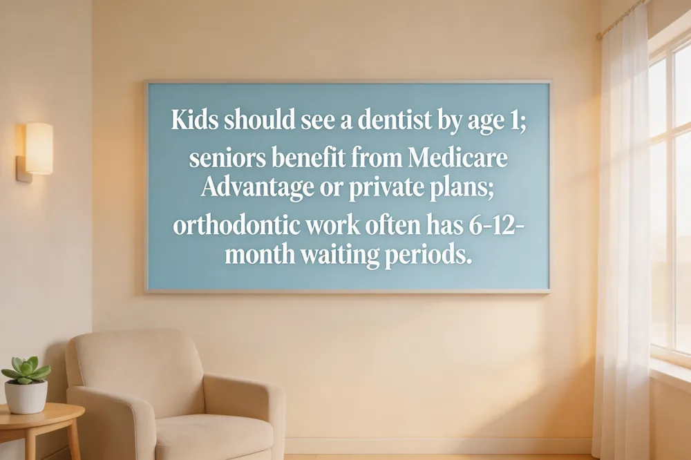In Louisiana, families should schedule a child’s first dental visit by age 1 and consider pediatric sealants, which many plans cover at 100 % as a preventive measure against cavities. Early exams and cleanings not only protect primary teeth but also count toward the annual maximum, helping families use benefits before they reset on January 1. Orthodontic coverage varies wildly; most plans impose a 6‑ to 12‑month waiting period before crowns, bridges, or Invisalign are covered, and the reimbursement is often 50 %‑60 % of the fee. Seniors should review their plan’s annual maximum and deductible, as many policies still cover routine cleanings, exams, and X‑rays at 100 % while offering lower coinsurance for basic restorations. Preventive care—twice‑annual cleanings, fluoride treatments, and X‑rays—remains the most cost‑effective way for patients of any age to maintain oral health and avoid costly repairs later in the year.