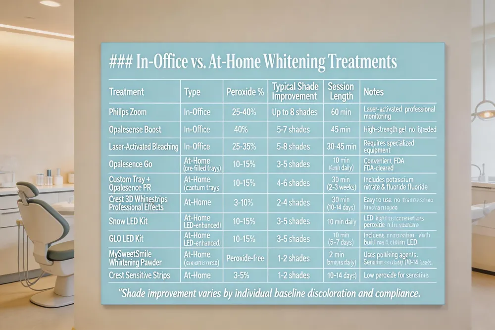 When you’re deciding how to brighten your smile, the most reliable route starts with a professional exam. In‑office bleaching—such as Zoom, Opalescence Boost, or laser‑activated treatments—uses 25‑40 % hydrogen peroxide under dentist supervision. These high‑strength gels lift deep stains in a single visit and are the most effective whitening option, delivering up to eight shade improvements quickly.