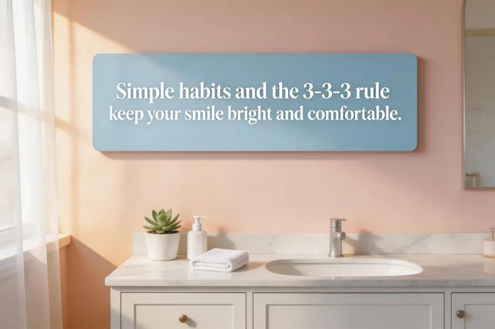 The 3‑3‑3 rule is a simple mnemonic to keep your smile healthy: brush three times a day for three minutes each session, replace your toothbrush or electric head every three months, and follow a three‑step routine—brush, floss (or clean between teeth), and rinse with fluoride mouthwash when appropriate. This routine removes plaque, reduces cavities, and supports gum health, giving you a naturally bright, comfortable smile every day.