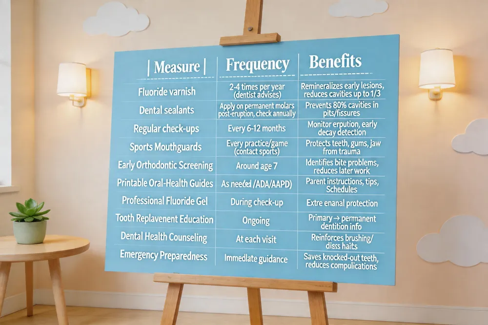 Fluoride varnish and sealants – Professional fluoride varnish, applied two to four times a year by a dentist, delivers a higher concentration of fluoride than over‑the‑counter toothpaste and helps remineralize early lesions. Dental sealants, a thin protective coating placed on the chewing surfaces of permanent molars, can prevent up to 80% of cavities in those pits and fissures.