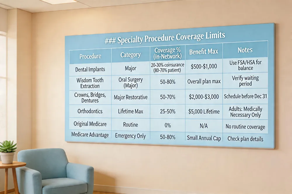 Maximum annual benefit limits – Most plans cap payments at $1,000‑$2,000 per year; unused amounts are lost on Dec 31. Orthodontic benefits often have a separate lifetime maximum. Using preventive services early and scheduling major work before year‑end helps you capture the full benefit.