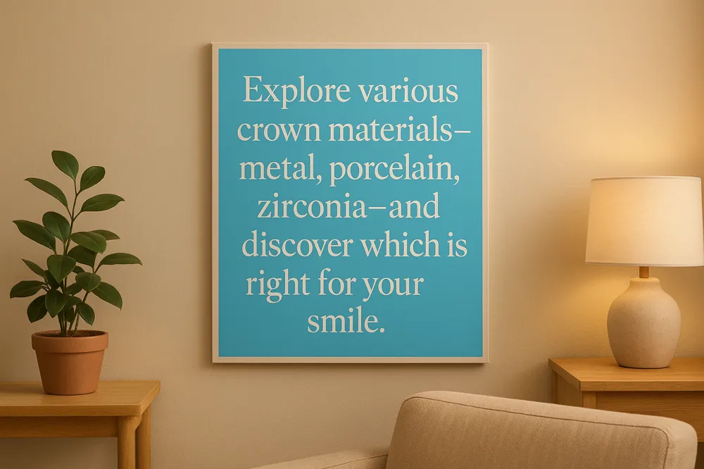 Choosing the right crown material is essential for durability and aesthetics. Metal crowns offer strength, ideal for molars, while porcelain and zirconia crowns provide a natural look suited for front teeth. Same-day crowns deliver convenience but may not suit all cases.